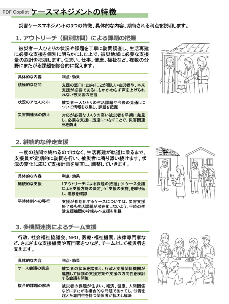 • 第1章 概要と災害ケースマネジメント :本書の概要、災害ケースマネジメントの内容説明