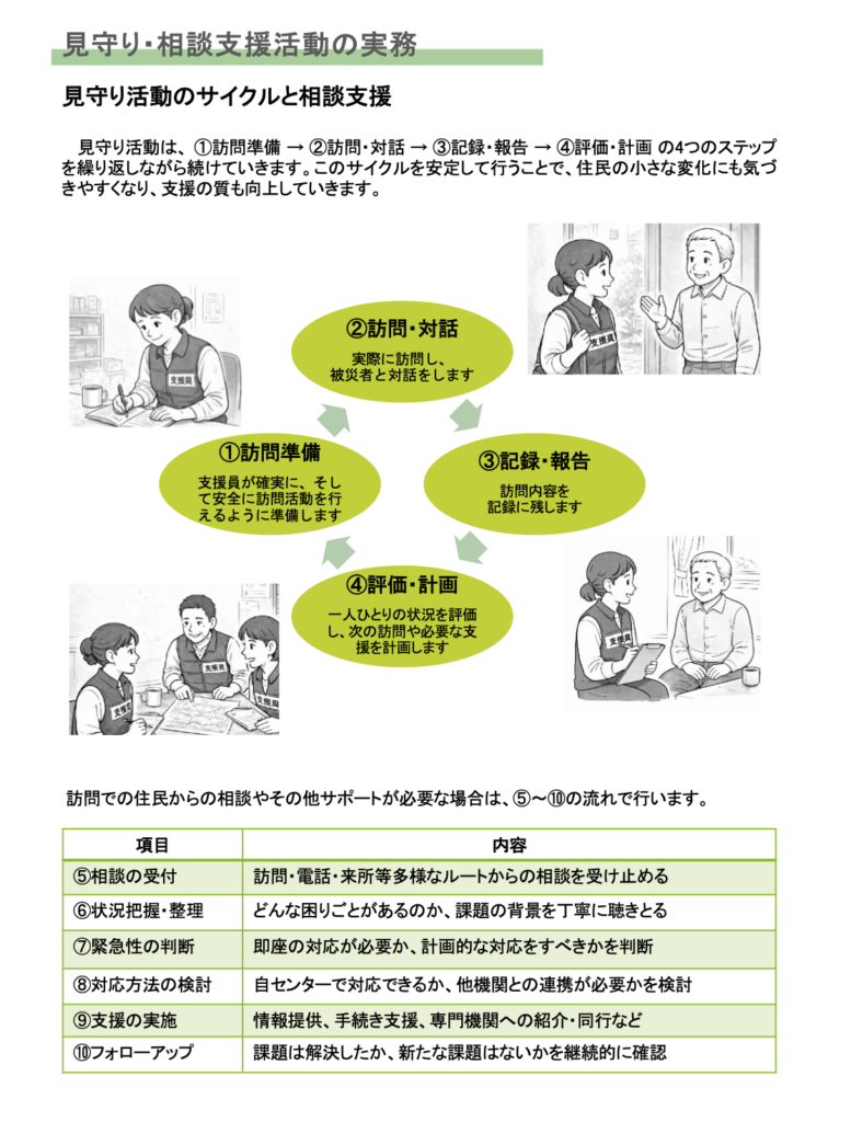 • 第4章 被災者支援活動 :巡回見守り、情報提供等の被災者支援活動を説明