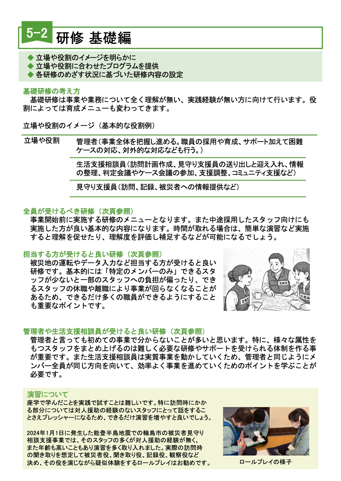 • 第5章 支援の担い手確保と育成 :見守り等を担う支援員の確保と研修等による育成を説明